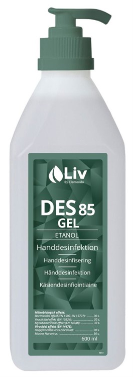 Etanolbaserad handsprit av geltyp som verkar effektivt mot coronavirus, förkylningsvirus och influensavirus. Produkten används för att förebygga och förhindra mikrobiologisk smittspridning via händer. Innehåller 85% denaturerad etanol samt glycerin som återfuktare för att förhindra uttorkning av huden. Desinfektionsmedlet efterlämnar en mjuk och smidig hud. Vid utbrott av kräksjuka, rekommenderas att desinfektionen föregås av handtvätt med tvål och vatten.